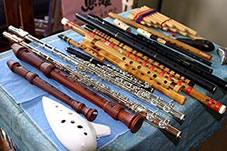 笛とひとくちに言っても、下の写真のように世界にはたくさんの笛があります。それぞれの特徴やどんな人たちが吹いていたかというお話とともに、音色を聴き比べてみました。いわゆる民族楽器といわれる笛の音色は、どこか郷愁を誘うものがあります。 |